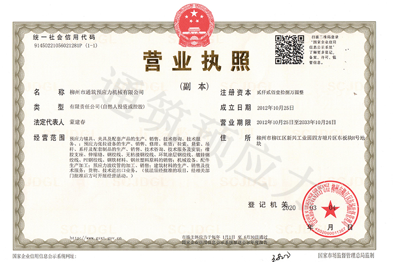 柳州市通筑預應力機械有限公司,集預應力產(chǎn)品研制開(kāi)發(fā),機具,錨具生產(chǎn)、工程施工為一體的專(zhuān)業(yè)企業(yè)。其產(chǎn)品廣泛用于路橋、市政、高層建筑、電站建設、巖土錨固、深基坑支護等工程。 公司經(jīng)過(guò)多年的發(fā)展,技術(shù)力量雄厚,擁有一批多年從事預應力錨具設計、制造與維修和施工的專(zhuān)業(yè)人才,可為用戶(hù)提供優(yōu)質(zhì)價(jià)廉產(chǎn)品、良好售后服務(wù)及專(zhuān)業(yè)技術(shù)咨詢(xún)。 公司按照ISO9001-2000國際標準進(jìn)行管理,建立起一套嚴格的產(chǎn)品管理制度,其質(zhì)量體系通過(guò)率中國質(zhì)量認證中心的認證注冊,產(chǎn)品質(zhì)量穩定可靠,所生產(chǎn)的預應力系列產(chǎn)品,經(jīng)國家權威部門(mén)檢測,...